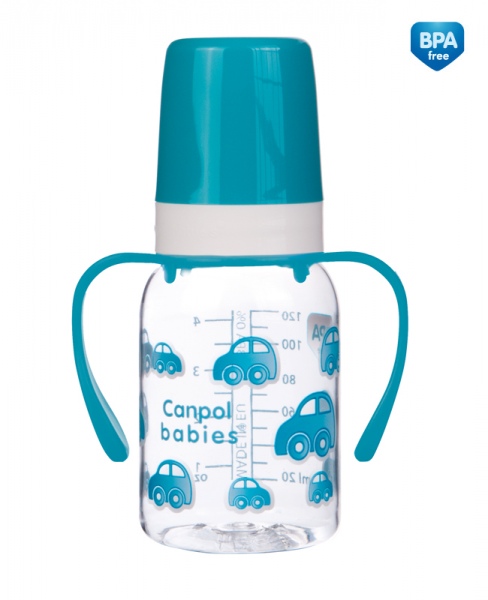 Wykonana z nowego, innowacyjnego surowca (Tritan), który jest bezpieczny dla dziecka i całkowiecie wolny od BPA (bisfenol A). Butelka jest trwała, bezpieczna, wygodna, o czytelnej skali. Spełnia najwyższe normy jakości. Atrakcyjne wzory i kolory przyciągają uwagę dziecka. Standardowo wyposażona w smoczek silikonowy, antykolkowy, okrągły o przepływie wolnym (3m+).  Posiada wygodne, odpowiednio wyprofilowane uchwyty ułatwiające trzymanie butelki w malutkich rączkach dziecka.