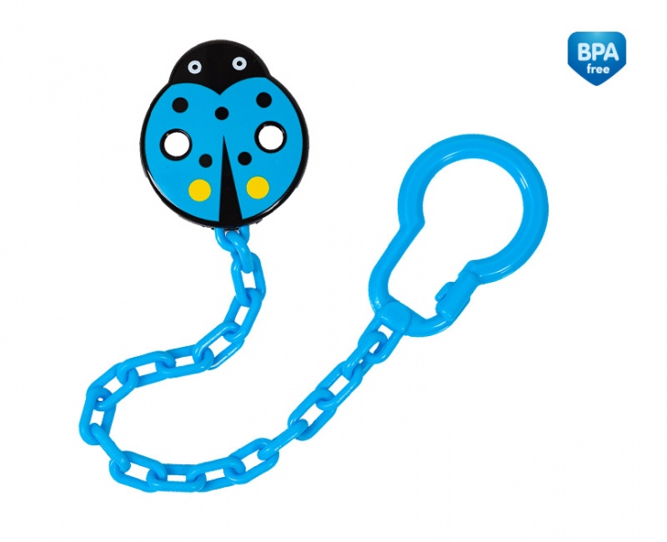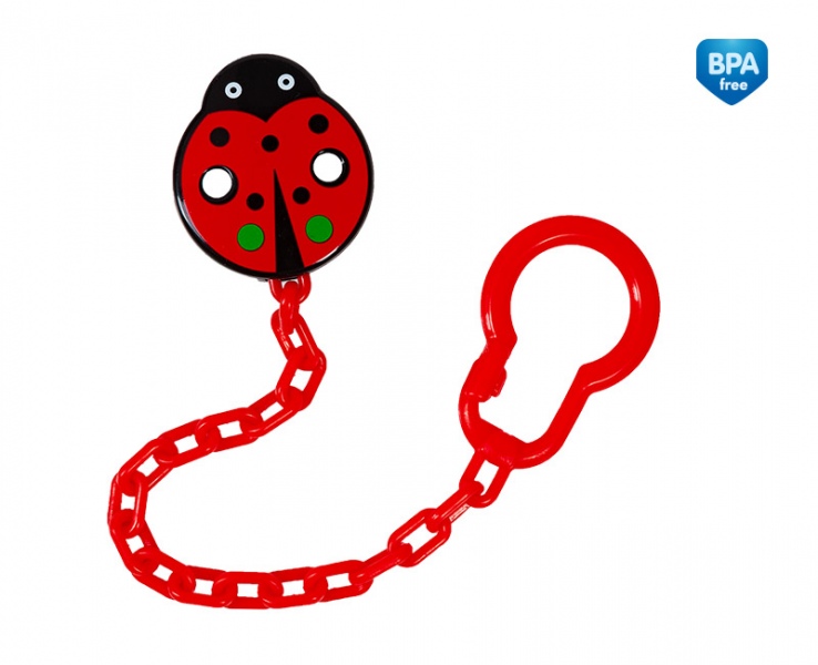 Łańcuszek wyposażony jest w praktyczny klips, który umożliwia pewne i stabilne przymocowanie łańcuszka do ubranka dziecka. Ochroni tym samym smoczek przed zgubieniem lub ubrudzeniem po upadku na ziemię. Zaokrąglone krawędzie nie skaleczą dziecka a różne wzory i kolory pozwolą na łatwe dopasowanie łańcuszka do stroju maluszka.